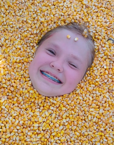 Everybody’s favorite is the corn pit, but we have props for photos, antique tractors, various games around the patch, and a corn maze we check every Monday for wayward children (just kidding!)
